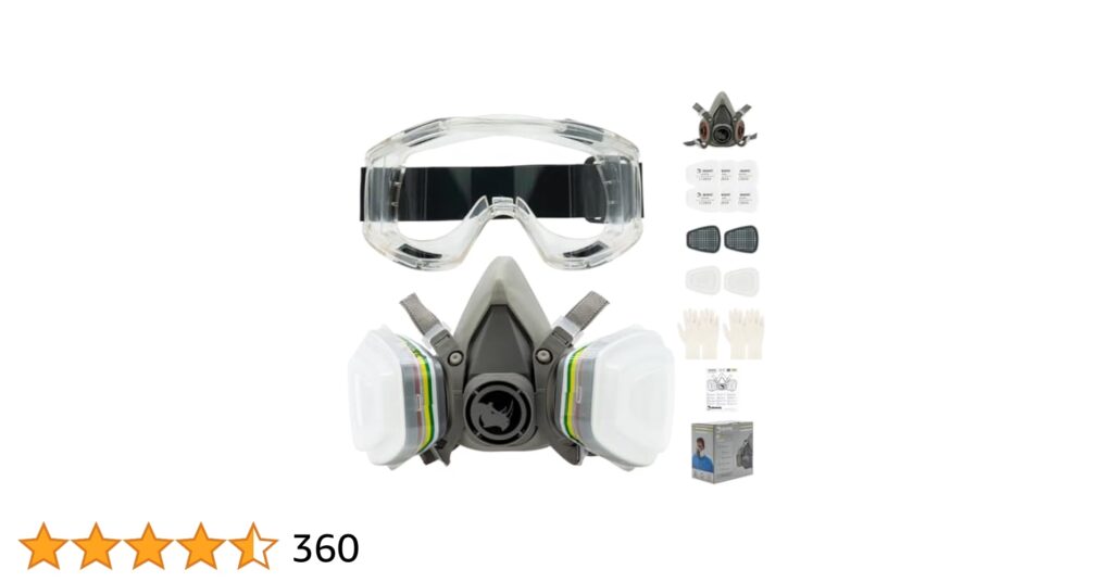 Voor het spuiten van verf, vooral met oplosmiddelhoudende verven, is een halfgelaats- of volgelaatsmasker met de juiste gas- en dampfilters (meestal type A, gecombineerd met een P-deeltjesfilter, bijvoorbeeld A2P3) essentieel. Een 3M verfdampmasker met deze specificaties is een veelgebruikte en effectieve optie.