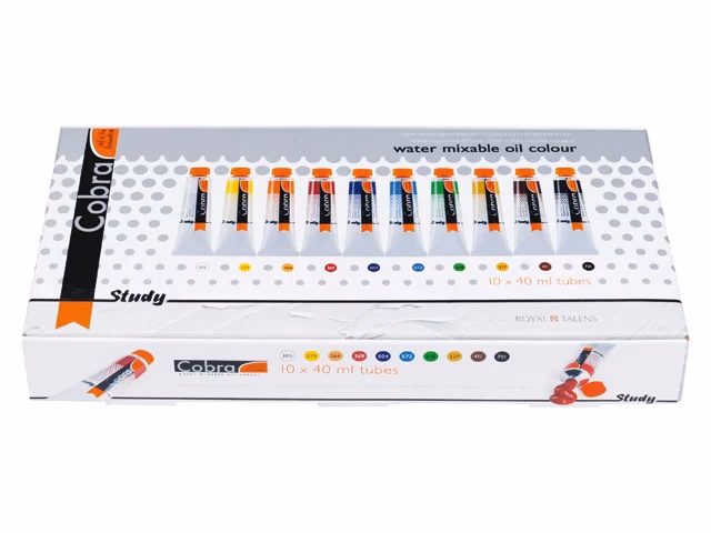 Cobra Study is een revolutionaire lijn binnen de wereld van de olieverf, ontwikkeld door Royal Talens. Het unieke aan deze verf is dat het, ondanks dat het een echte olieverf is, verdund en gereinigd kan worden met water. Ja, u leest het goed: water! Dit betekent een einde aan het gebruik van terpentine, white spirit of andere vluchtige organische stoffen (VOS) in uw atelier. Cobra Study behoudt alle eigenschappen die u verwacht van hoogwaardige olieverf: een boterachtige consistentie, een prachtige glans en een uitstekende lichtechtheid die ervoor zorgt dat uw kunstwerken jarenlang hun levendigheid behouden. Het is een perfecte keuze voor iedereen die wil experimenteren met olieverftechnieken zonder zich zorgen te hoeven maken over de gezondheidsrisico's of de sterke geuren. Het is bijzonder geschikt voor thuisgebruik, in scholen of in ateliers waar ventilatie een uitdaging kan zijn. De verf is speciaal geformuleerd om de traditionele look en feel van olieverf na te bootsen, maar dan met het gemak van acrylverf als het gaat om verdunnen en schoonmaken. Dit maakt de overstap van andere media naar olieverf aanzienlijk eenvoudiger en minder intimiderend.