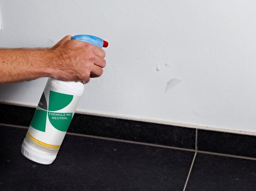 • Reinigen: Maak de muur grondig schoon met een geschikte ontvetter (bijv. St. Marc of een universele reiniger). Dit verwijdert vet, vuil en nicotine. Spoel goed na met schoon water en laat de muur volledig drogen voordat je verdergaat.