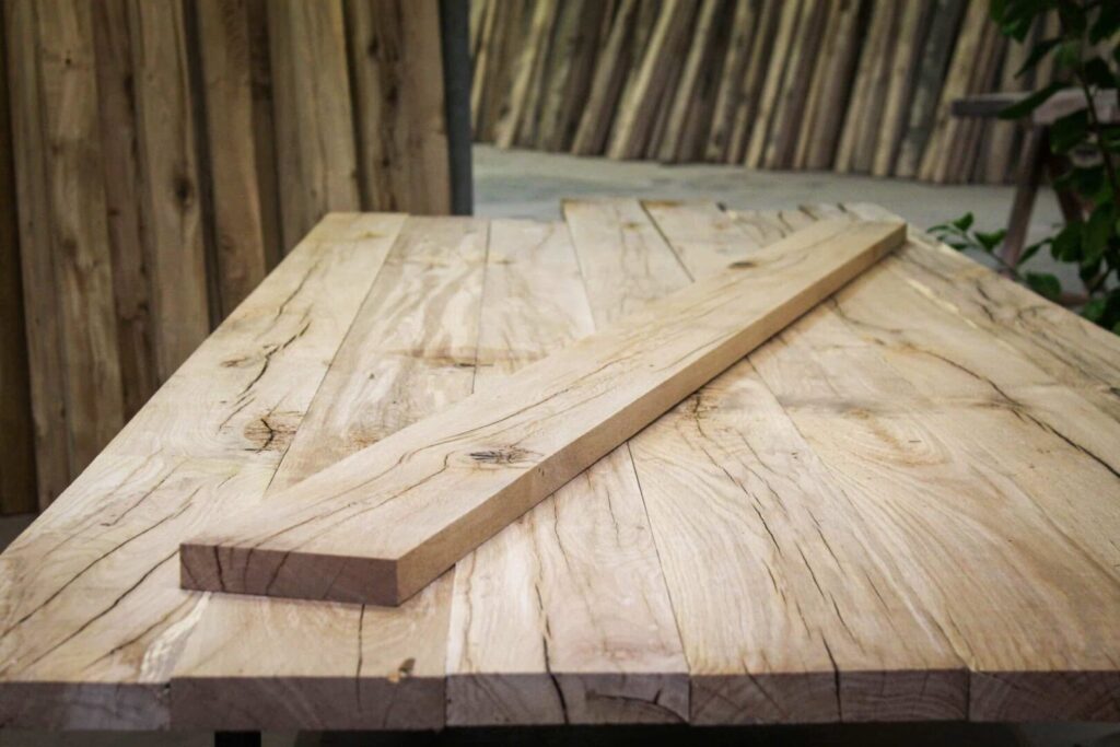 Een ander kenmerk dat Frans eiken zo geliefd maakt, is de specifieke, grotere nerfstructuur. Deze unieke structuur draagt bij aan een rijkere, meer uitgesproken uitstraling van het hout. De bredere groeiringen en de manier waarop het hout is gezaagd, creëren een levendig patroon dat diepte en karakter toevoegt aan meubels, vloeren en interieurafwerkingen. Deze esthetische kwaliteit wordt vaak gecombineerd met een opmerkelijke stabiliteit, waardoor het hout minder gevoelig is voor kromtrekken of scheuren bij temperatuur- en vochtigheidsveranderingen.
