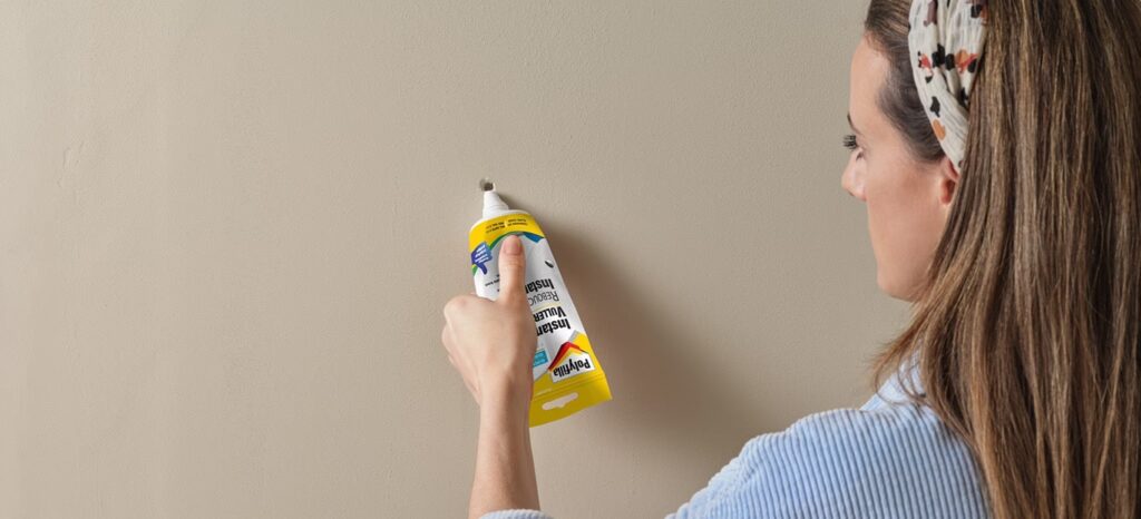 Voor kleine gaatjes, zoals die van spijkers, schroeven of pluggen, is een kant-en-klaar lichtgewicht vulmiddel of een tube muurvuller ideaal. Deze zijn eenvoudig aan te brengen, drogen snel en zijn makkelijk schuurbaar. Ze zijn vaak wit van kleur en geschikt voor binnenmuren van gips, stucwerk of beton.