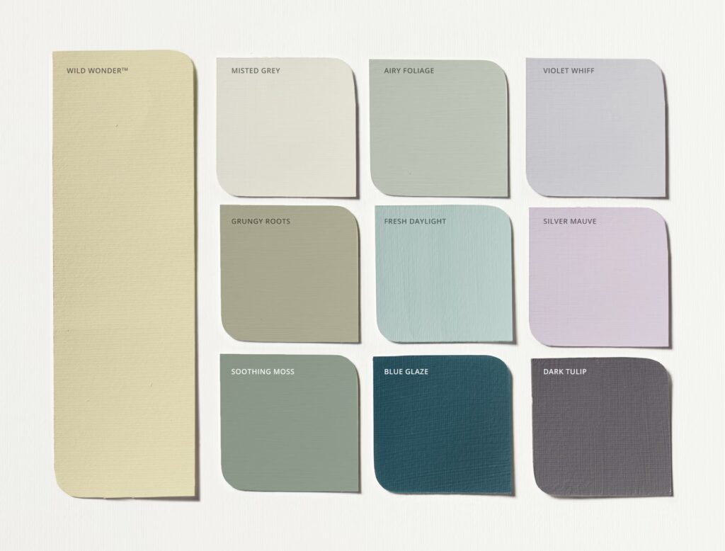 | Views (blauwgroen) | Oceaanachtig, helder, verfrissend, brengt een vakantiegevoel. | Badkamers (spa-gevoel), slaapkamers, woonkamers, entree. |