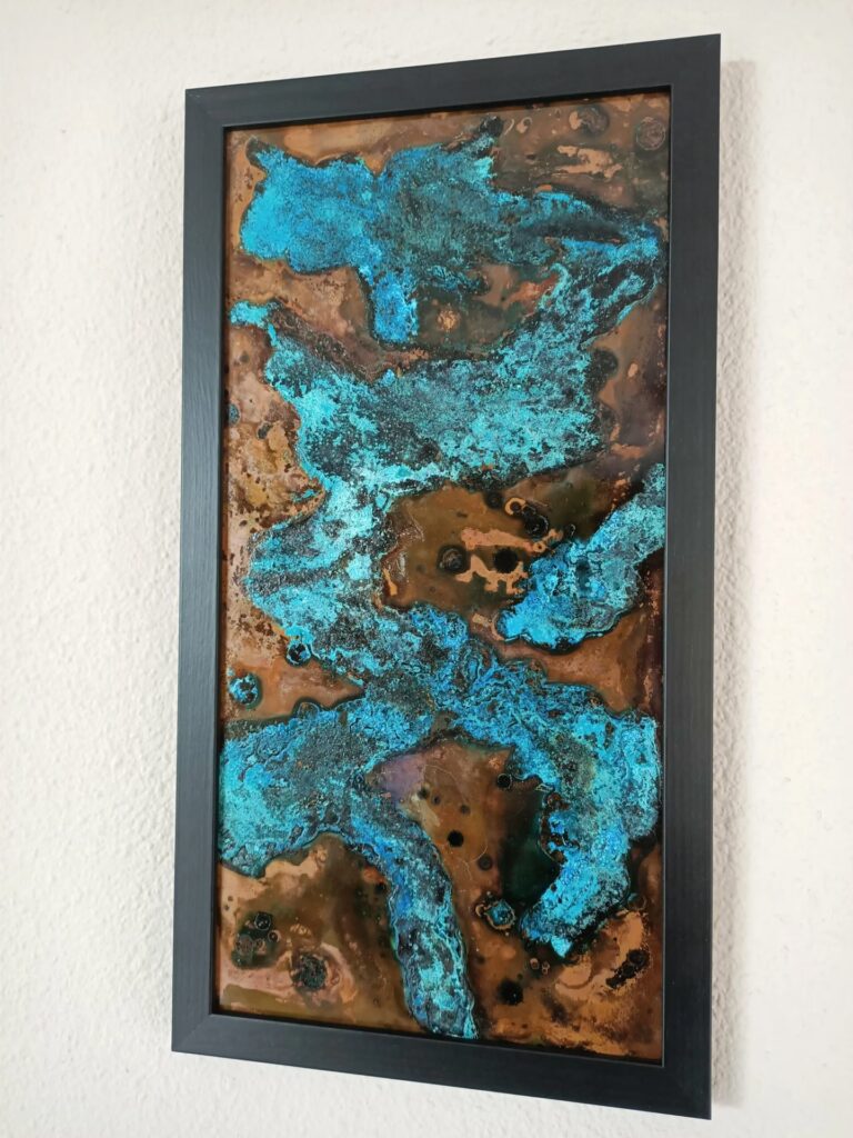 - Unieke Luminositeit: De lichte reflectiviteit van koper kan, zelfs door een grondlaag en verflagen heen, een subtiele, interne gloed aan het schilderij geven. Dit effect is vooral merkbaar bij werken met transparante glazes, waarbij de kleuren extra levendig en diep lijken.