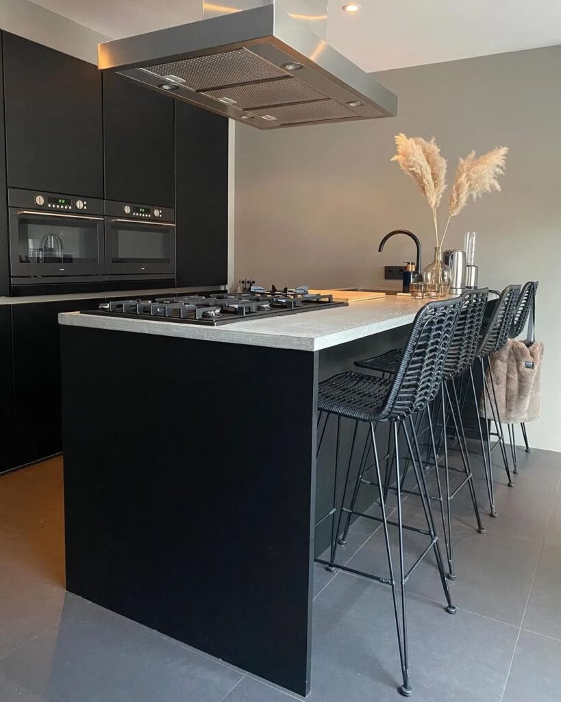 Ook in functionele ruimtes zoals de keuken en badkamer kan Quiet Luxury worden toegepast. Kies voor duurzame, gemakkelijk te reinigen verf in tinten zoals een diep antracietgrijs voor een moderne, strakke look, of een warm beige voor een meer traditionele, uitnodigende sfeer. In de badkamer kan een vergrijsd blauw of groen een spa-achtige, rustgevende ambiance creëren. Combineer deze kleuren met natuursteen, houtaccenten en subtiele metalen armaturen voor een gevoel van onopvallende luxe die zowel praktisch als prachtig is.