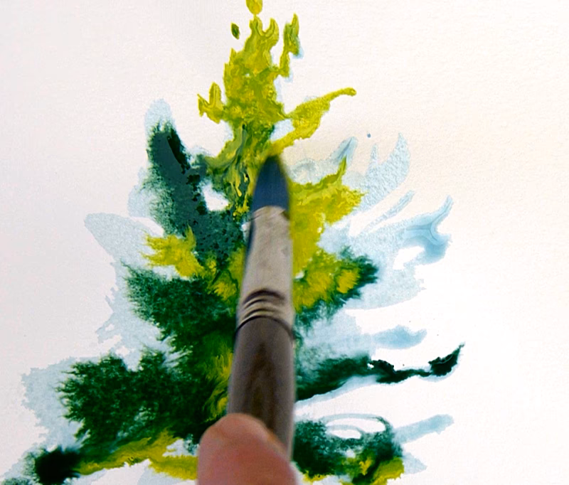- Spatten: Laad je penseel met verf en tik zachtjes tegen de steel van het penseel (of een ander penseel) om kleine spetters op je papier te krijgen.