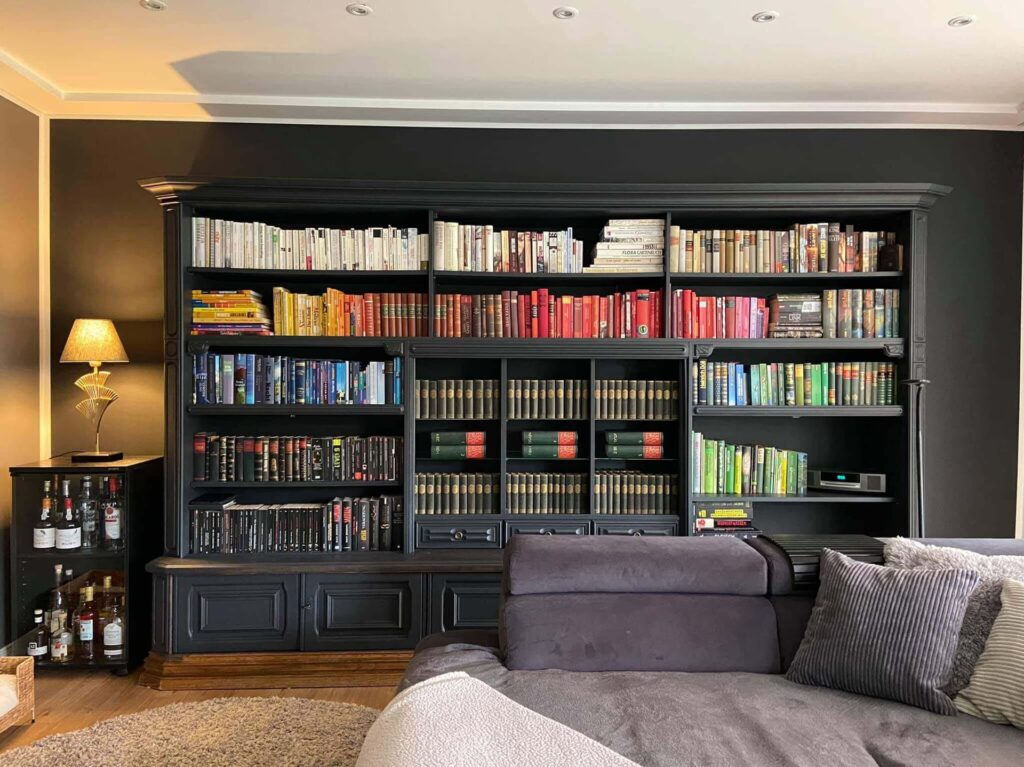Als u op zoek bent naar een moderne draai aan de klassieke esthetiek van eikenhouten meubels, overweeg dan het gebruik van contrasterende grijstinten. Donkere schakeringen van grijs, zoals antraciet of diep leigrijs, kunnen een opvallend contrast vormen met de warme tonen van het eikenhout, wat resulteert in een geraffineerde en eigentijdse uitstraling. Deze kleurencombinatie werkt bijzonder goed in woonkamers en kantoren, waar het een strakke, professionele en toch uitnodigende sfeer kan creëren. Het spel tussen het koele, strakke grijs en het warme, natuurlijke eikenhout zorgt voor een dynamische en visueel interessante ruimte. Grijs is bovendien een uitstekende basis voor het toevoegen van andere accentkleuren, zoals diepblauw, smaragdgroen of zelfs een vleugje geel, om de ruimte levendiger te maken.