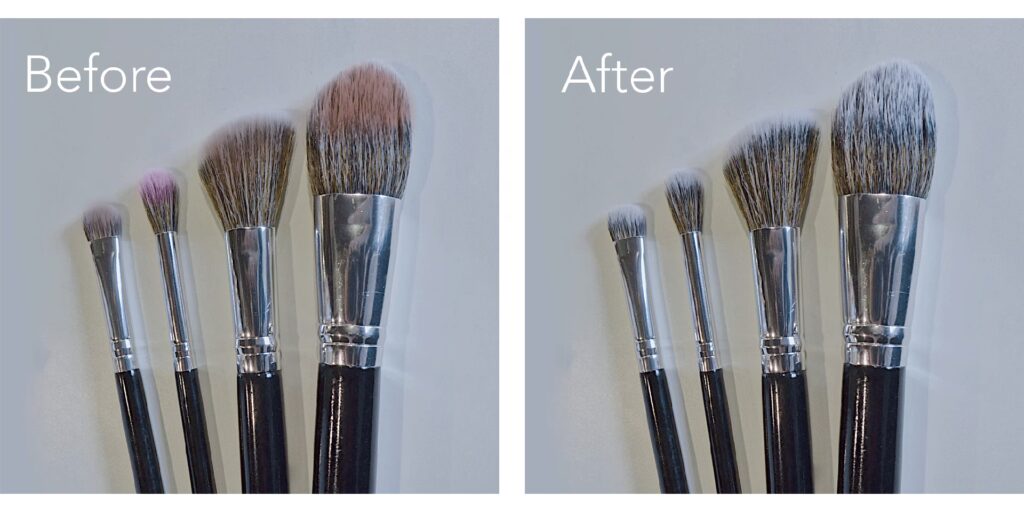 - Te agressieve reinigingsmiddelen gebruiken: Vermijd afwasmiddelen met sterke chemicaliën of ontvettende middelen die de kwasten kunnen uitdrogen of beschadigen. Milde shampoo of speciale brush cleansers zijn veiliger.