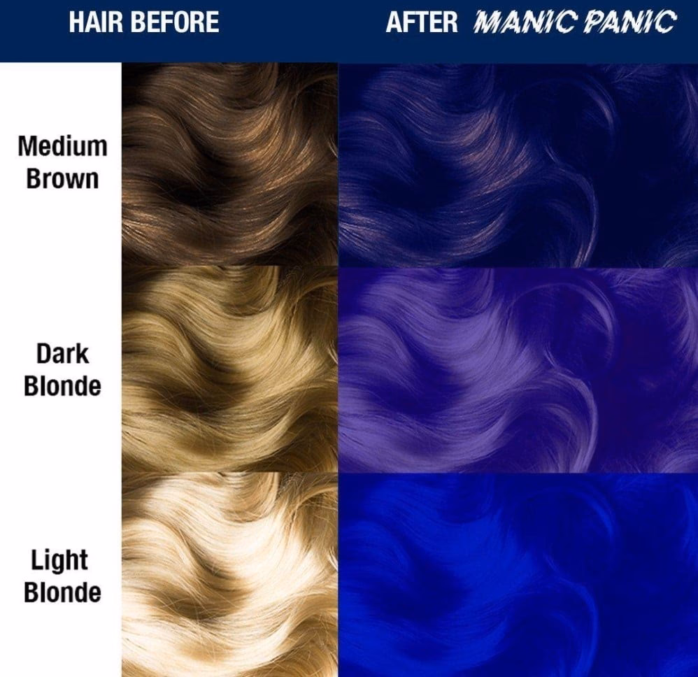 - Manic Panic vervaagt geleidelijk en mooi, zonder harde uitgroei. De kleur wordt lichter en zachter naarmate je haar wast. Je kunt de kleur dan eenvoudig opnieuw aanbrengen of een andere tint proberen.
