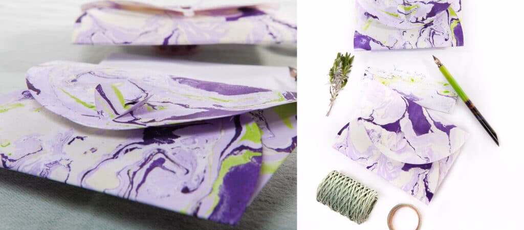 - Leg het gemarmerde papier plat neer op een schone, beschermde ondergrond om te drogen.