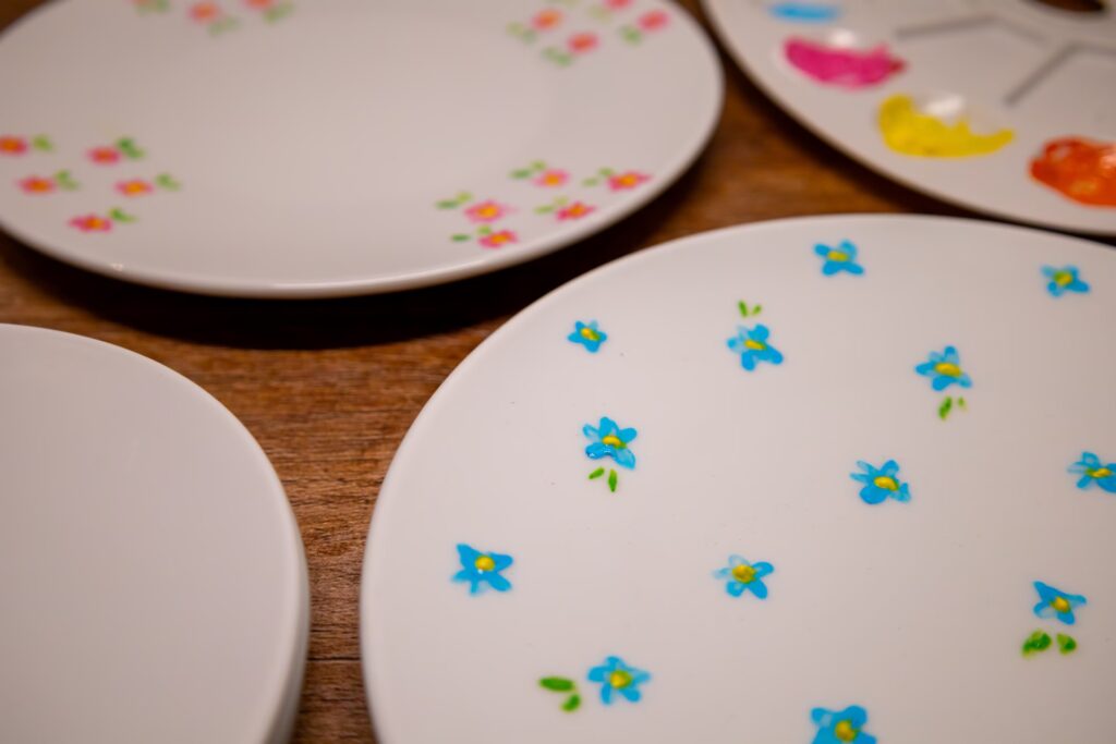 - Bak het bord: Plaats het geschilderde bord in een koude oven en stel de temperatuur in op 175°C (350°F). Bak gedurende 30 minuten, schakel dan de oven uit en laat het bord erin afkoelen. Dit proces helpt de verf te hechten.