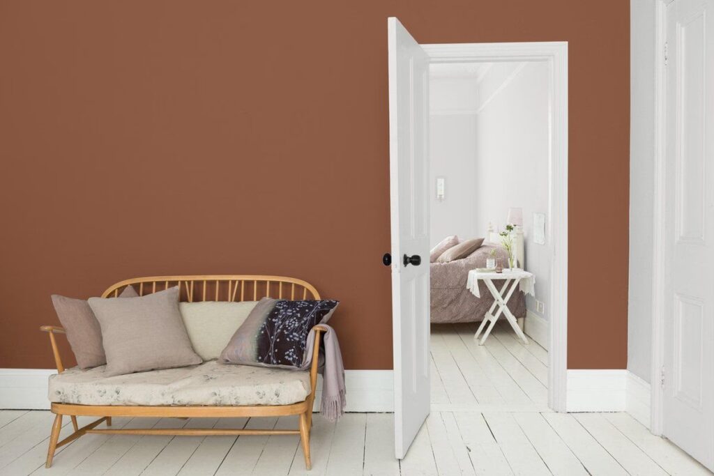 - RAL 030 50 20 Terracotta: Voor een harmonieuze en samenhangende look kunt u ook overwegen om verschillende tinten roestbruin met elkaar te combineren. Voeg terracotta toe aan de mix, een kleur die dicht bij roestbruin ligt maar met een iets roder tintje. Samen creëren ze een boeiend palet van aardse kleuren dat een gezellige en uitnodigende sfeer in uw interieur brengt. Zoals eerder genoemd, komt de RAL 8004 Koperbruin uit de RAL Classic waaier ook heel dicht bij de terracotta kleur, wat extra flexibiliteit biedt bij de kleurkeuze en het creëren van gelaagde, ton-sur-ton effecten.