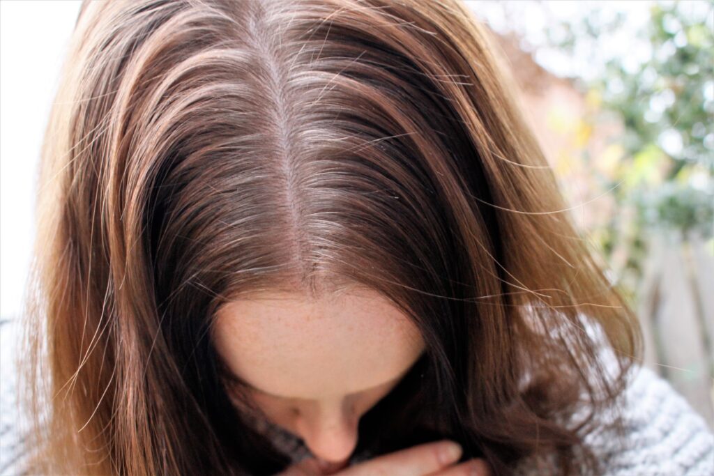 - Volume creëren: Plat haar accentueert uitgroei. Door meer volume bij de aanzet te creëren (bijvoorbeeld met een droogshampoo, textuurspray of door het haar tegen de groeirichting in te föhnen), wordt de uitgroei minder direct zichtbaar. Droogshampoo heeft bovendien het extra voordeel dat het een lichte poederachtige laag achterlaat die ook een beetje camoufleert.