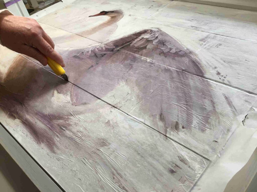 Het zorgvuldig uitknippen van de plaatjes is een precisiewerkje. Een klein, scherp schaartje is hierbij je beste vriend. Neem de tijd om de randen zo netjes mogelijk te knippen, want dit draagt bij aan de professionele uitstraling van je eindresultaat.