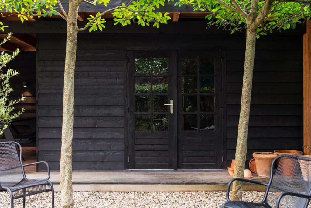 De veelzijdigheid van de Woca Exterior Oil Zwart maakt het een ideale oplossing voor vrijwel elk buitenproject, of het nu gaat om liggend of staand hout. De olie kan perfect worden gebruikt op schuttingen, gevelbekleding, buitenmeubilair, maar ook op zware constructies zoals overkappingen en terrassen. Hieronder lichten we enkele unieke voorbeelden uit die de kracht en schoonheid van deze olie illustreren: